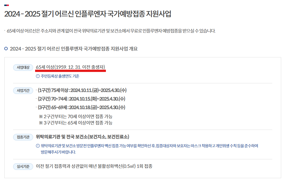매년 10~11월 (독감), 코로나19는 변이 발생 시 선별 실시