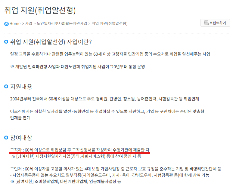 시니어 일자리 연계 서비스