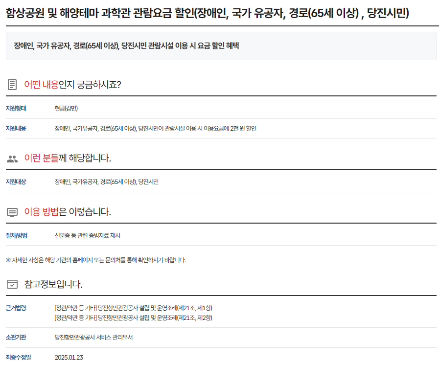지역 주민 등록이 되어 있어야만 감면을 받을 수 있는 경우도 많으니, 주소지 기준 시설에서 확인하는 것이 가장 정확합니다.
