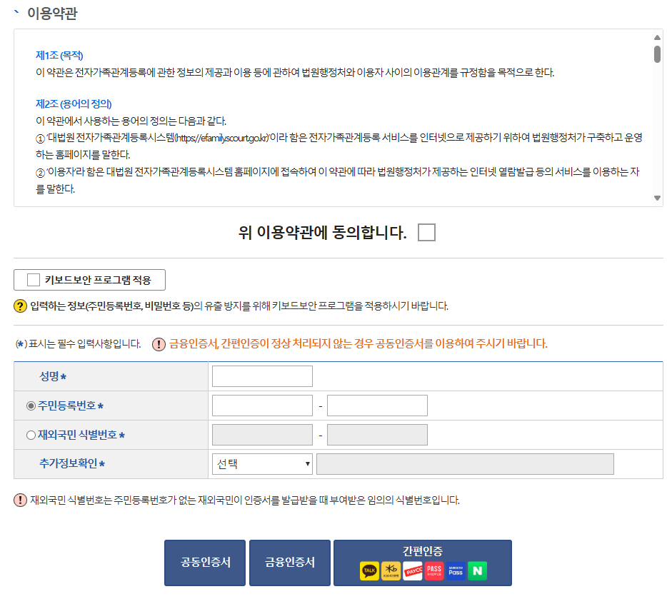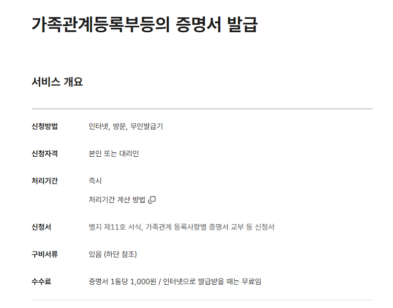 가족관계증명서 역시 거의 동일한 절차로 신청이 가능합니다.