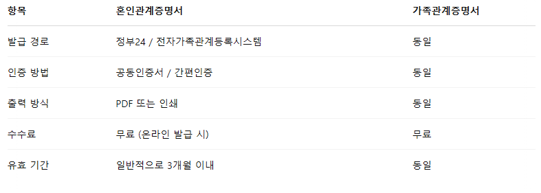 혼인관계증명서와 가족관계증명서는 일상생활에서 다양한 행정·사적 절차에 필요하게 되는 필수 서류입니다.