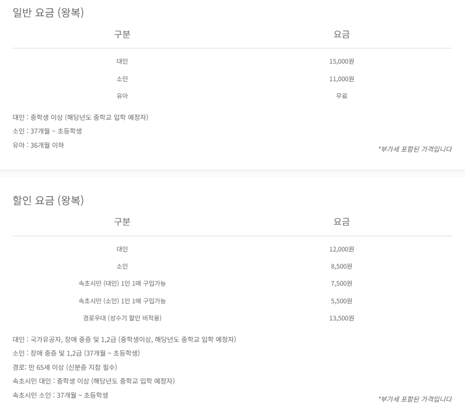 왕복 15,000원 내외 / 단체 할인 가능