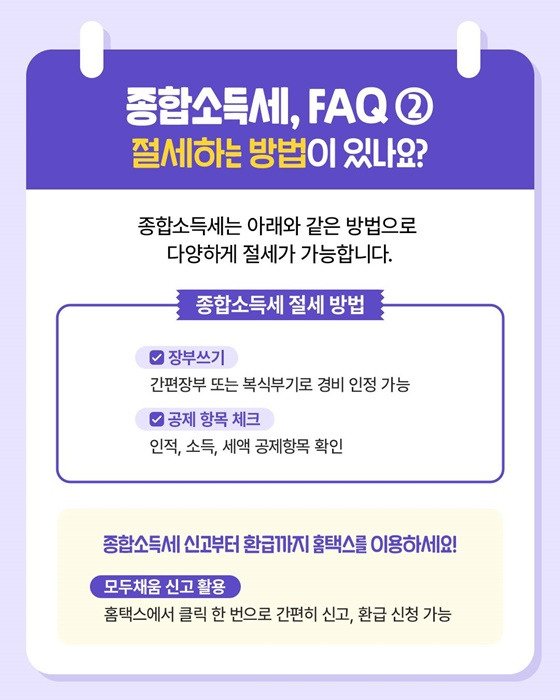 홈택스를 활용하면 복잡한 절차도 클릭 몇 번으로 해결할 수 있으며, 국세청 역시 모두채움 신고서, 신고 도우미, 전화 상담 등을 통해 납세자의 편의를 제공하고 있습니다.